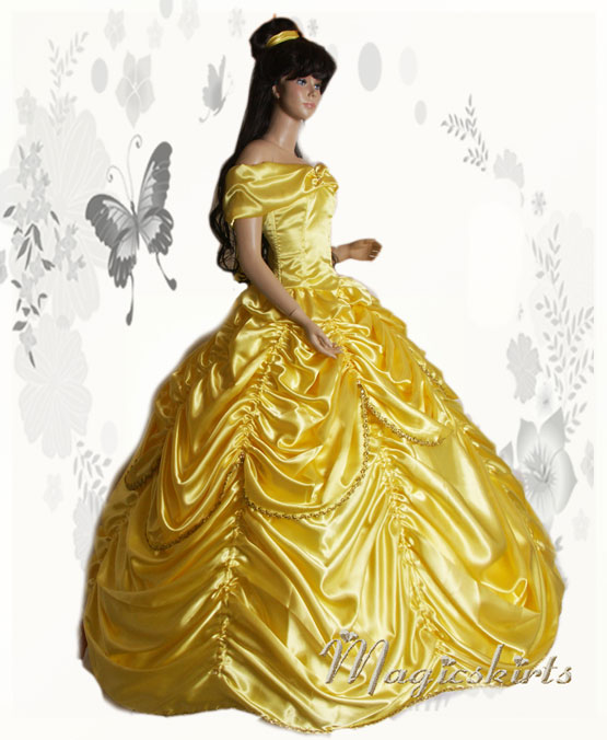 Ballkleid 5 tlg. wird nach Maß gefertigt: Oberteil mit Schößchen , Überrock vorne kurz und hinten länger -gerafft, langer Rock gerafft, Reifrock Umfang 360 cm weiß, Haarband aus Satin gelb-glänzend , möglich in jeder Größe 1498 Euro* *Preis inkl.MwSt zzgl. Versandkosten