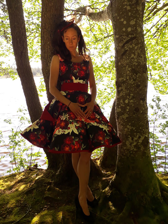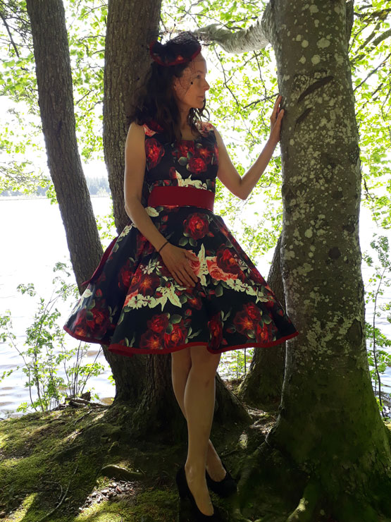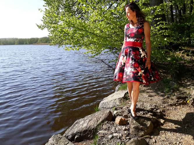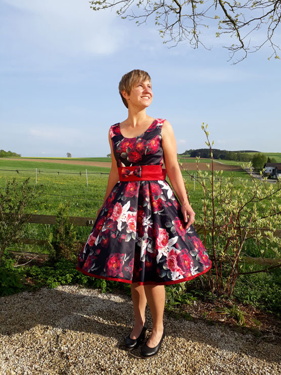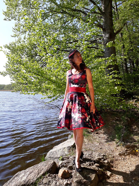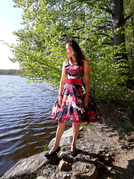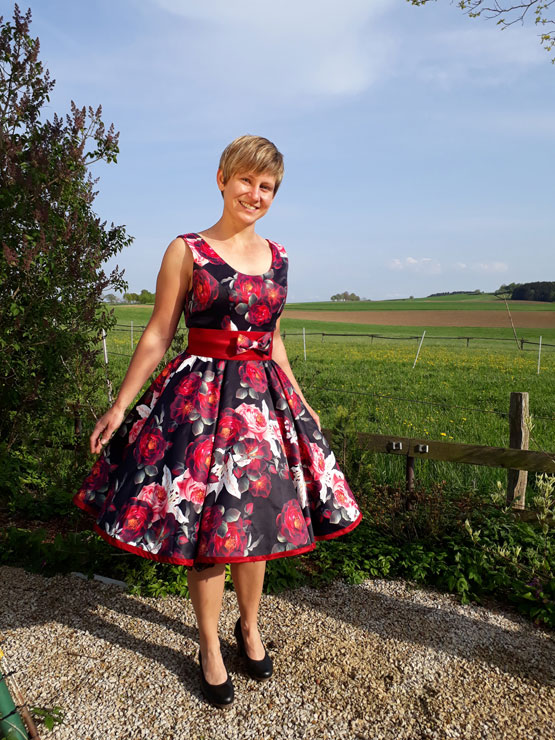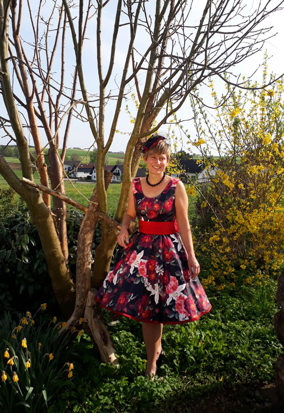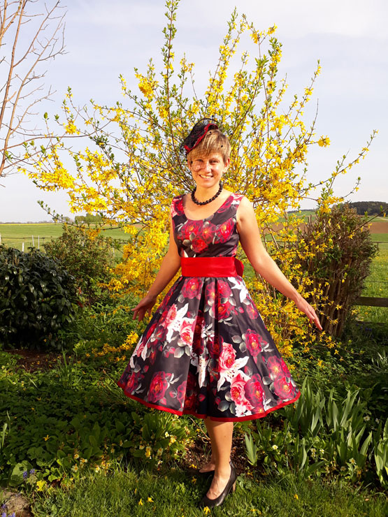 Material Kleid : 98 % Polyester, 2 % Elasthan, Petticoat: 100 % Polyamid zurück "Tanzkleider, Sommerkleider, Rockabillykleider" Cornelia Bayer, Mobil 0172 1668668, www.magicskirt.de