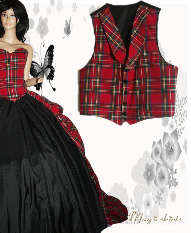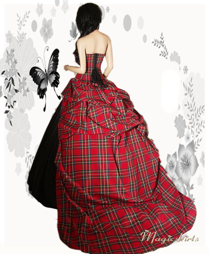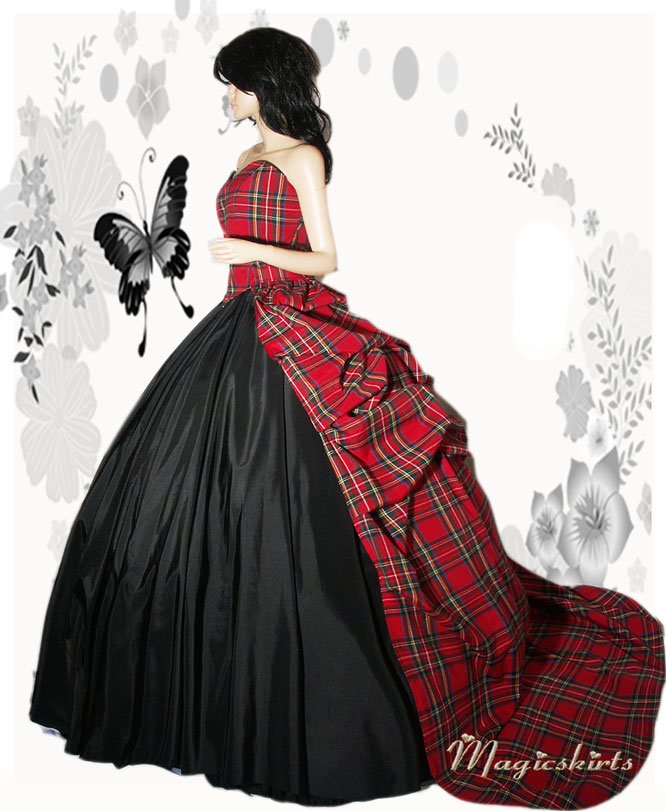 "Frauke": Taftrock schwarz &Schleppe Schottenkaro mit Oberteil 1899 Euro*,