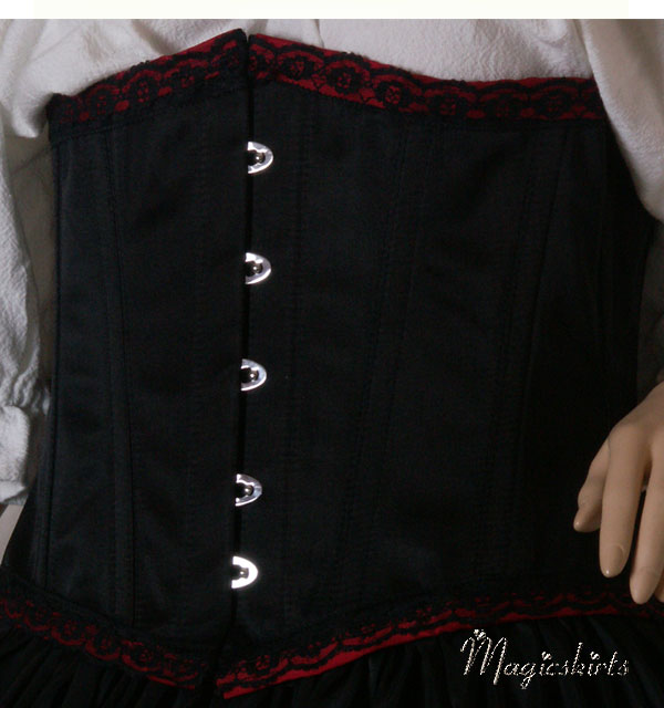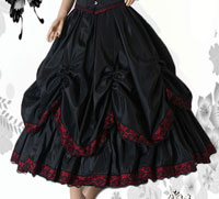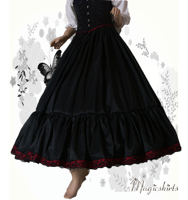 Die RockKombination Ariane ist aus schwarzem Taft mit einer Borte in dunkelrot und schwarzer Spitze darüber. Darunter ein MidiReifrock, somit fällt die RockKombination Ariane wunderschön und bezaubernd.
