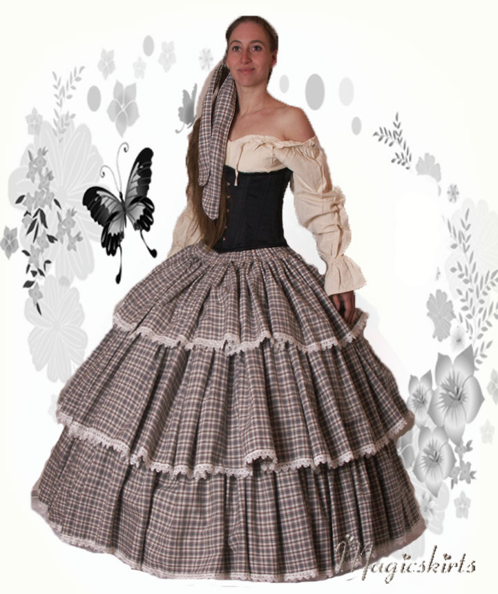 Carobunt mit Bluse (natur) & Reifrock Typ E (mein Model ist etwas klein....normalerweise schauen bei dem Rock mit Reifrock die Stiefelspitzen heraus-was superschön ausschaut):