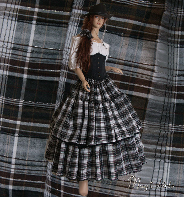 ebenso möglich: ein Beutelchen/Täschchen, ein passendes Cape (wie bei den Röcken: Caro-bunt und RockRosalie)oder Kopfschmuck auch ein VollbrustKorsett mit passenden Ärmelchen (siehe Western-Kollection Isabella) Der Rüschenrock "Sally" ist zu haben in folgenden Farben: Farbe 1 : dunkelbraun-braun-weiß mit Silberfaden: