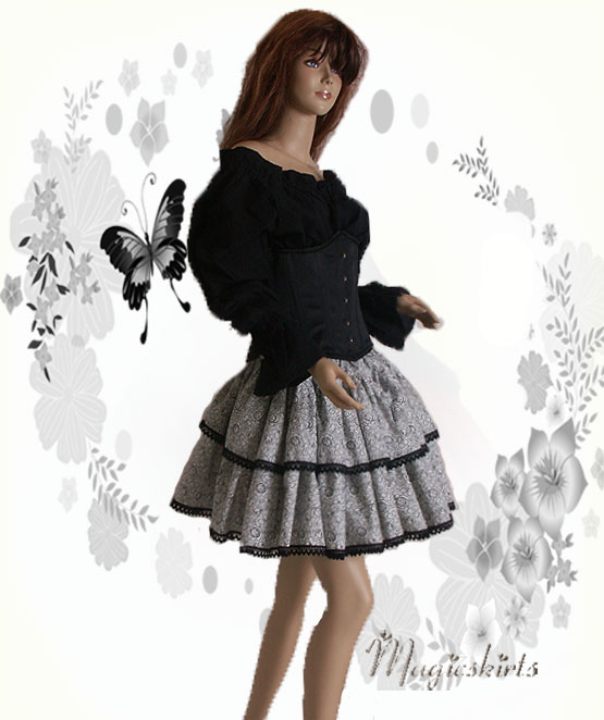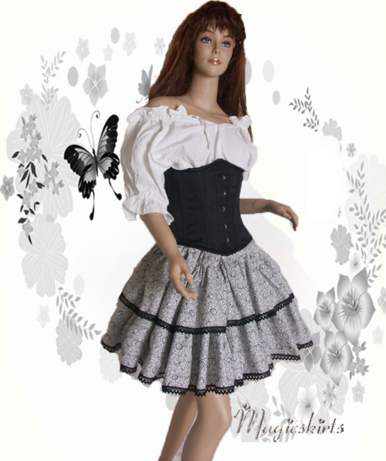 RockRosalie-mini (Farbe weiß-schwarz) mit Taillenkorsett und weißer Bluse RockRosalie-mini mit schwarzem Vollbrustkorsett RockRosalie-mini mit Taillenkorsett und schwarzer Bluse: