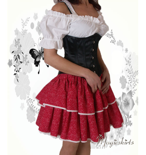 RockRosalie-mini (Farbe rot-weiß) mit Taillenkorsett und DirndlBluse(siehe Zubehör)