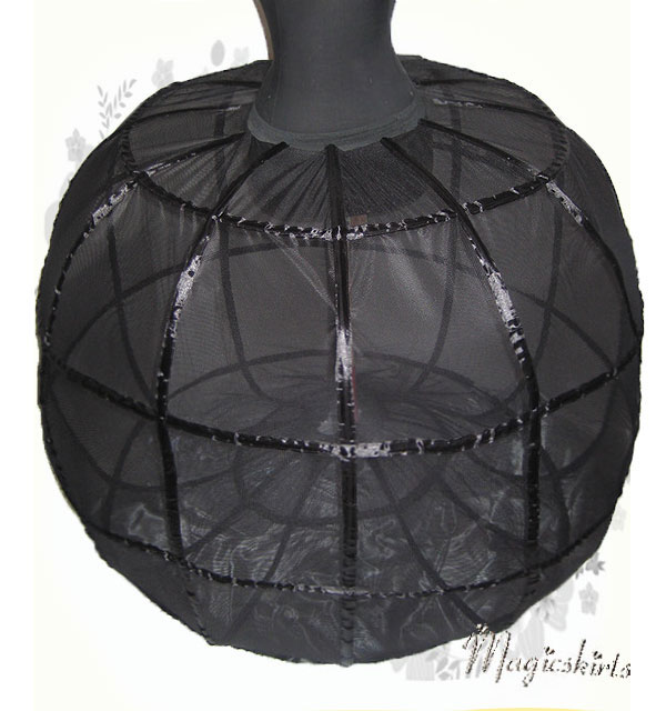 auf den Fotos ist ein sehr großer schwarzer Kugelreifrock mit 130 cm Durchmesser (ca. 410 cm Umfang) zu sehen, Kosten : 3998 Euro*