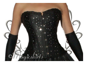 Diese bezaubernde Kombination besteht aus: Corsage, Satinrock & und schwarze lange Satinhandschuhe ♥♥♥ Die Corsage ist aus wunderschönem schwarz schimmerndem Satin gefertigt und hat vorne einen robusten Ösenverschluß aus Metall und einen Schnürverschluß hinten. Das Highlight sind die unzähligen Strasssteine unterschiedlicher Größe, die vorne aufgetragen wurden- glitzern herrlich bei Sonne oder künstl.Licht. Oben und unten ein Plissee-Abschluß. Mit 12 robusten PVC-Stäbchen. Farbe:schwarz möglich von Taillenumfang: 68 cm bis 95 cm (Gr. S bis XXL)