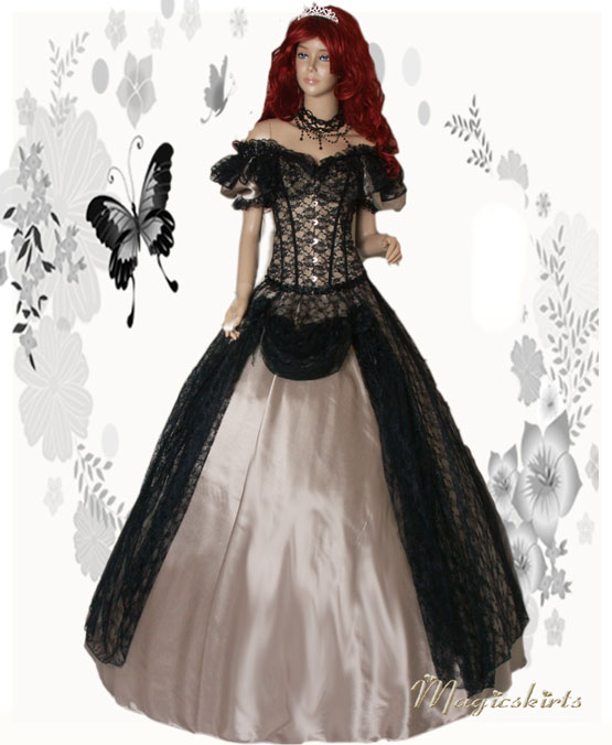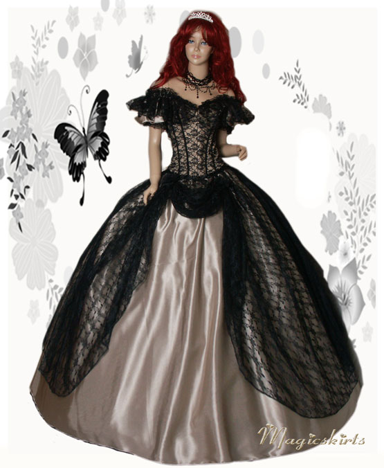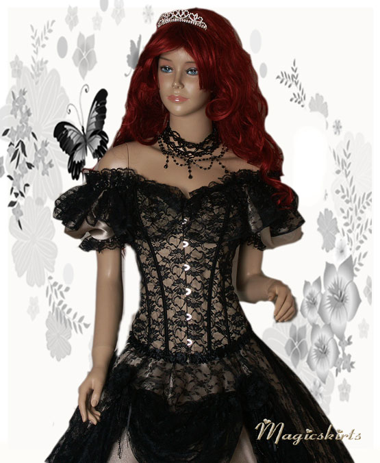 ♥♥♥ Ballkleid "Beate" ♥♥♥ Diese bezaubernde Kombination besteht aus: Corsage mit Ärmelchen und Schulterspitze, Ballrock und Spitzenrock ohne Reifrock 359 Euro* passend dazu Reifrock Typ E (mit Umfang 380 cm ), 89 Euro* oder Reifrock Typ F (mit Umfang 430 cm) , 107 Euro* Collier schwarz, 34 Euro*