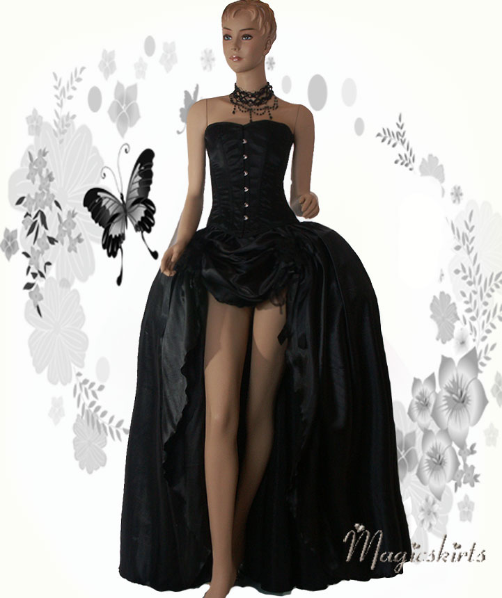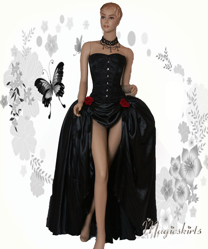 Schleier mittel weiss oder schwarz mit Satinband: 59 Euro* die Raffung vorne können Sie beliebig einstellen, von kürzer bis länger, siehe Fotos: Das echte Vollbrust-Korsett aus Satin hat einen klassischen Schnitt. Das Korsett ist sehr aufwendig gearbeitet und innen mit 100% Baumwolle ausgekleidet. Es besitzt eine Rückenschnürung (mit Schutzlasche) und vorn eine mit Ösen versehene Verschlußleiste. Das Korsett hat eingearbeitete Korsettstangen Stäbchen aus Edelstahl, die auf Grund ihrer Flexibilität für gute Beweglichkeit sorgen. Material: Außen: 100% Polyester / Innen: 100% Baumwolle