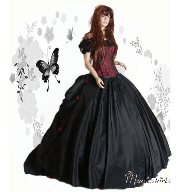 ♥♥♥ Ballkleid Kombination "Nicole" ♥♥♥ Diese bezaubernde Ballkleid Kombination besteht aus: Ballrock schwarz Umfang ca. 8 m darüber eine geraffte Schleppe mit Rosen, einem Halbbrustkorsett in rot schwarz und einer Baumwollbluse kurzarm schwarz (ohne Reifrock) 512 Euro*