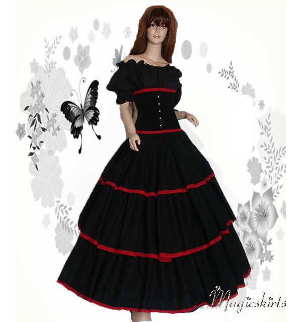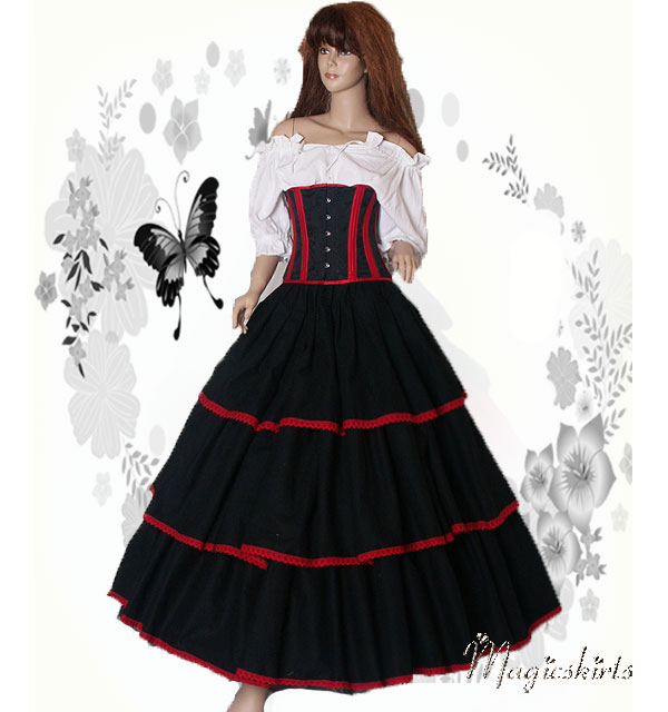 Farbe des Rockes auf den Fotos : schwarz mit roter Spitzen Baumwoll Borte verziert ♥♥♥ Beschreibung der einzelnen Teile: