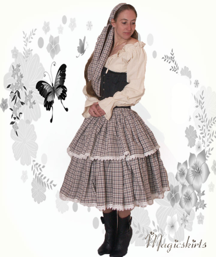 Western-Rüschenrock "Carobunt-midi" ist zu haben in Farbkombinationen kariert 01 bis 06 01 Hauptfarbe:braun, größeres Karomuster (Rock auf den Fotos oben) 02 Hauptfarbe: blau, größeres Karomuster 03 Hauptfarbe: dunklesflieder, größeres Karomuster 04 Hauptfarbe, braun, kleines Karomuster 05 Hauptfarbe: blau, kleines Karomuster 06 Hauptfarbe: dunklesflieder, kleines Karomuster