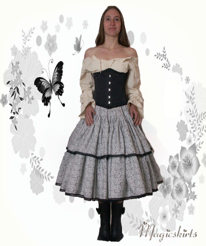 RockRosalie-midi mit Taillenkorsett, Bluse langärmlig (Farbe:natur, weiß oder schwarz passt besser zu diesem Rock):