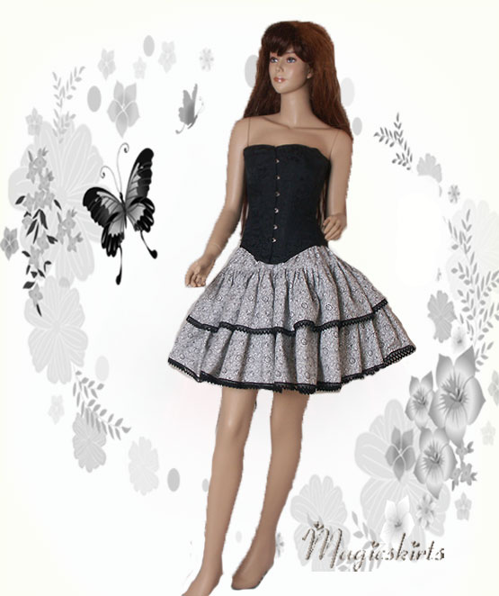 RockRosalie-mini (Farbe weiß-schwarz) mit Taillenkorsett und weißer Bluse RockRosalie-mini mit schwarzem Vollbrustkorsett RockRosalie-mini mit Taillenkorsett und schwarzer Bluse: