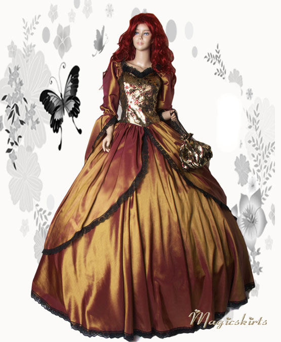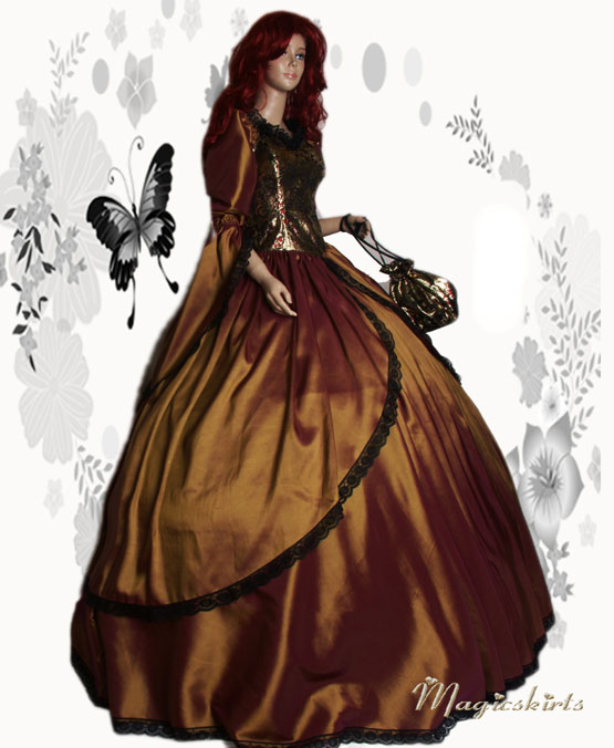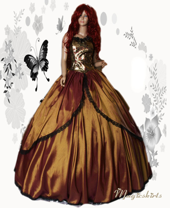 mit edlem mehrfarbig passendem goldenen Brokatstoff im Oberteil.