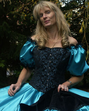 -Korsett mit Ärmelchen (auch Schulterrüschen möglich) , - Satinrock mit Rüschen und Borte, Cape kurz 3 Teile (ohne Reifrock) ♥♥♥